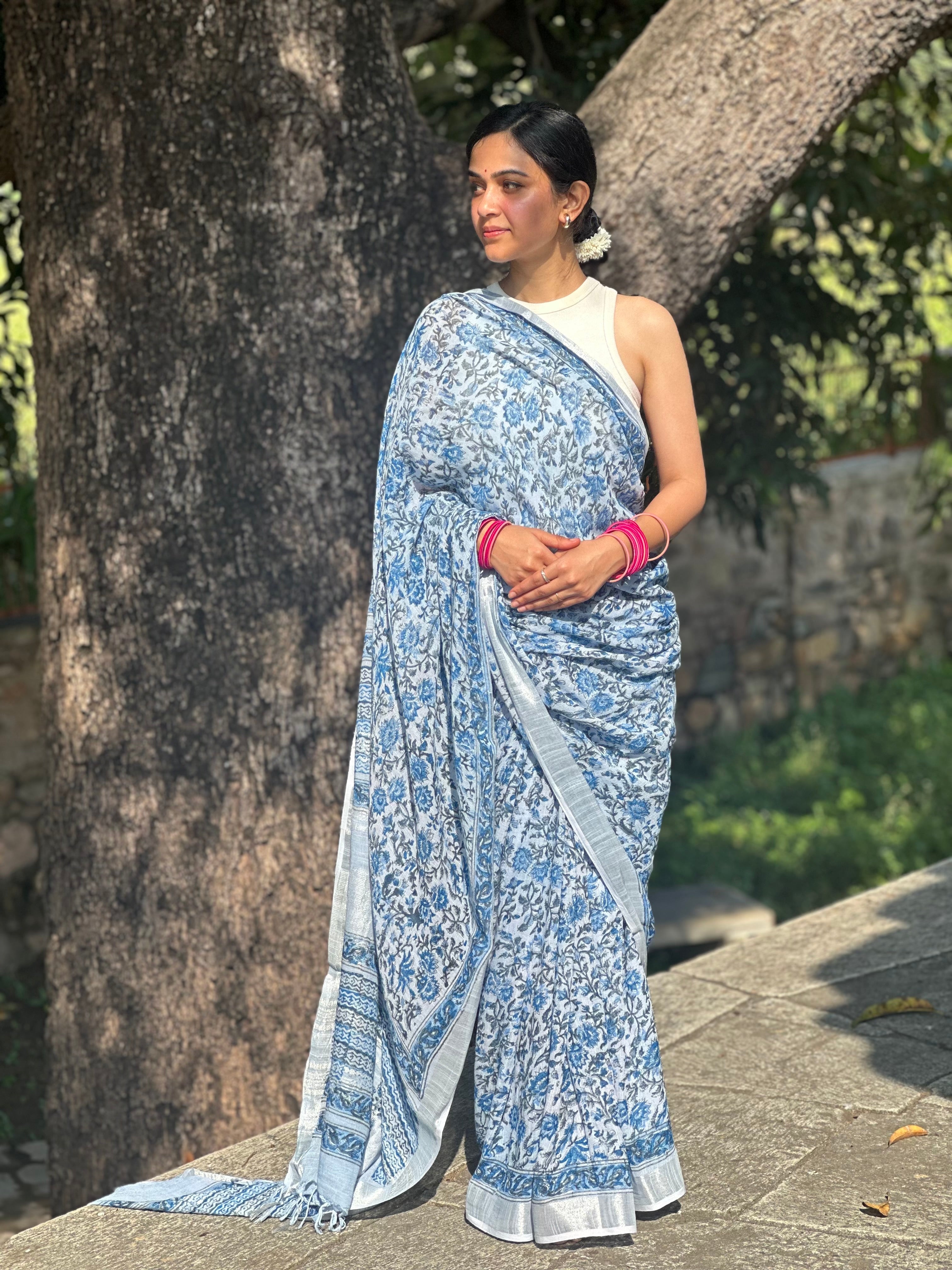 Tailored for the modern woman, this saree drapes effortlessly, offering both elegance and ease. Whether adorned with bold accessories for festive flair or kept simple with minimal jewelry for everyday charm, its versatile design seamlessly transitions across occasions, making it a timeless addition to any contemporary wardrobe.