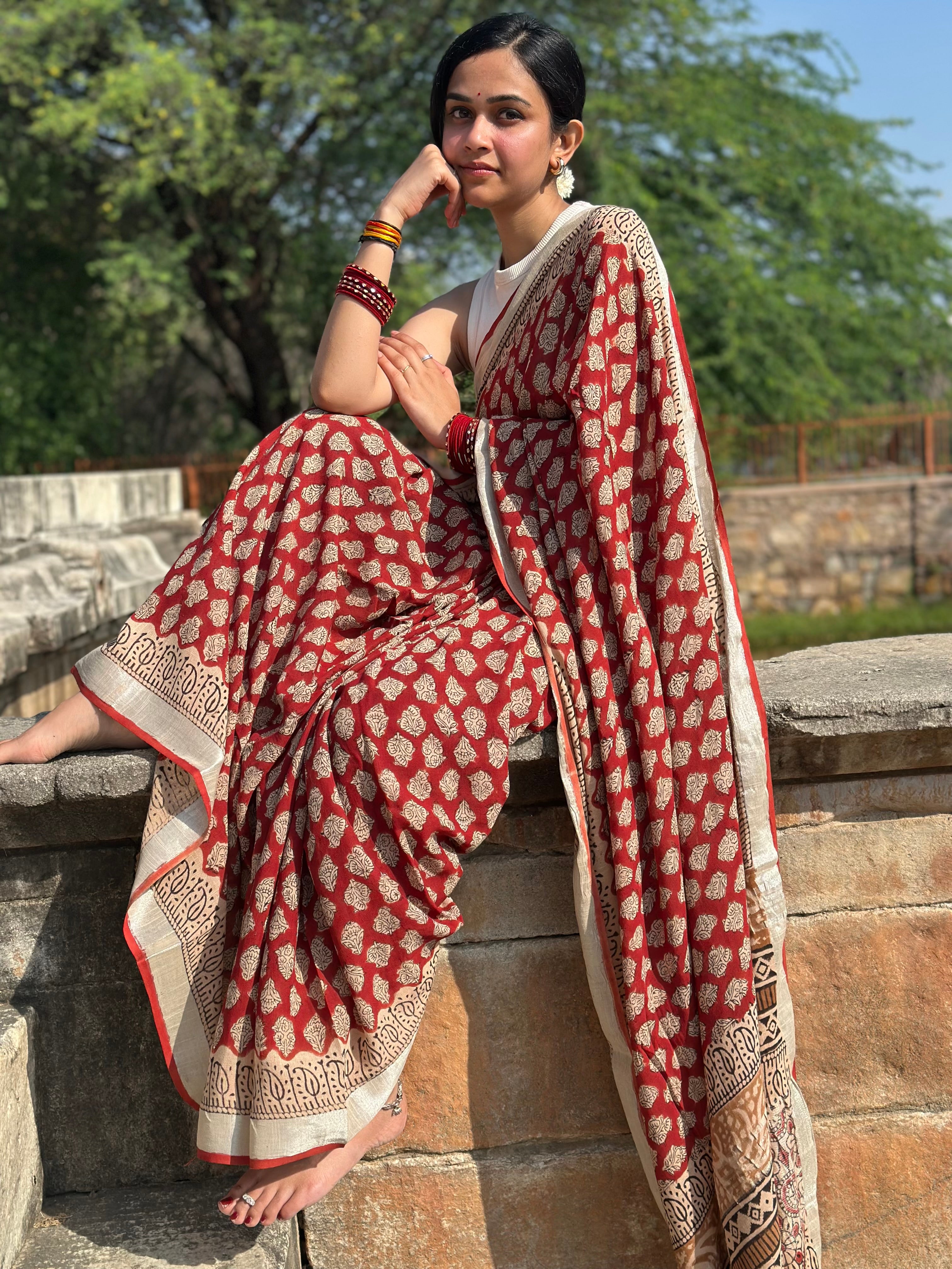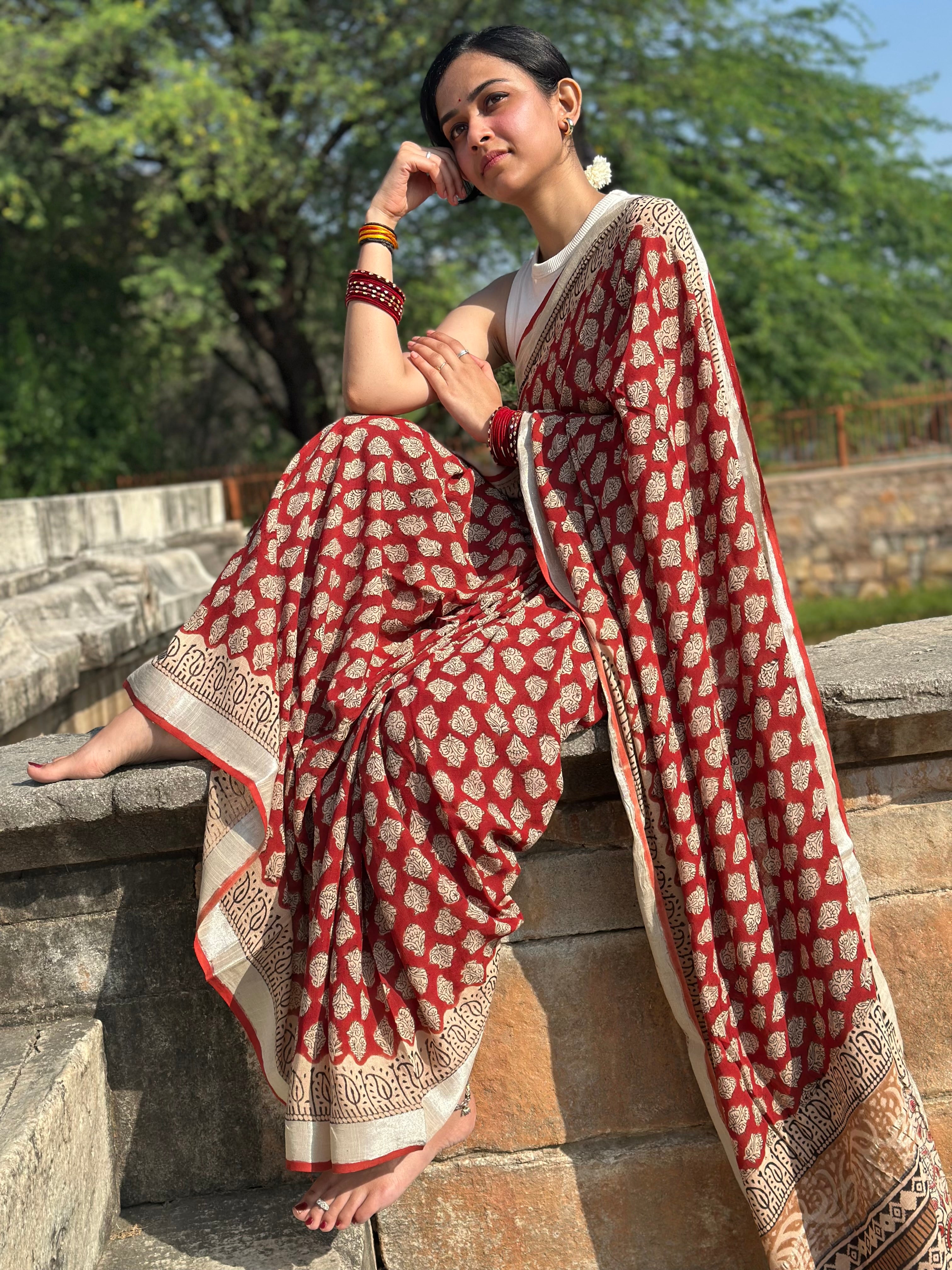 Wrap yourself in tradition with our Bagru Print Maroon Saree, a tribute to timeless craftsmanship and cultural heritage. Designed for the modern woman who cherishes authenticity, this saree blends classic artistry with contemporary style—making it more than just attire; it’s a graceful expression of identity and elegance.